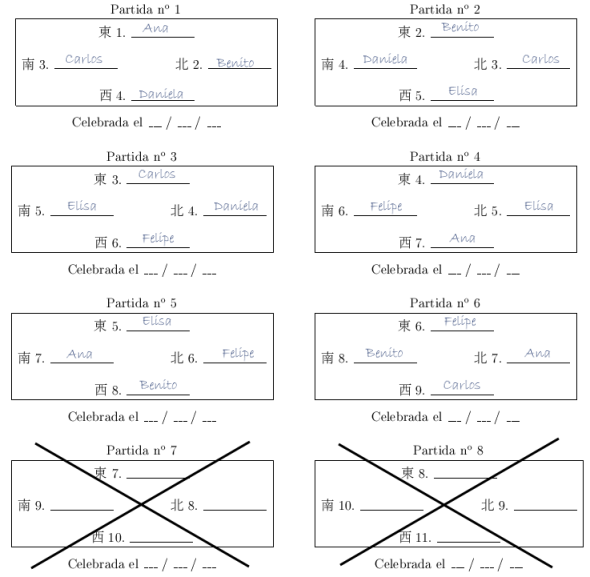 en exactamente cuatro partidas. En total habrá tantas partidas como